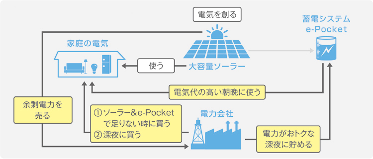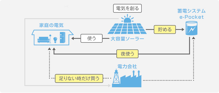 発電しない夜間や発電量の下がる悪天候時のエネルギーを、いかに自宅での発電分でまかなうか。それがエネルギー自給自足率を高めるための大切なポイントになります。